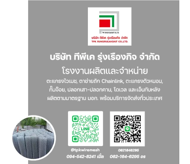 ติดต่อโรงงานผลิตไวท์เมช ตะแกรงเหล็ก ทีพีเค Line OA @tpkwiremesh ตลอด 24 ชั่วโมง