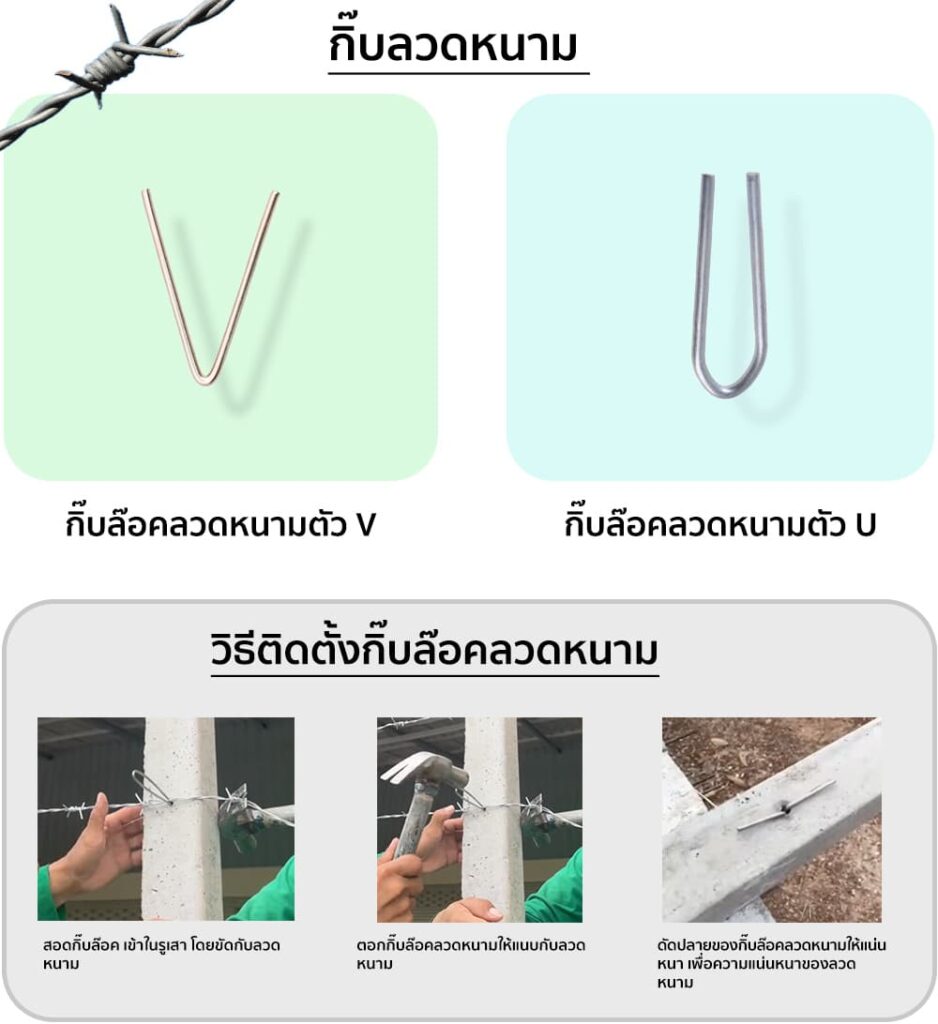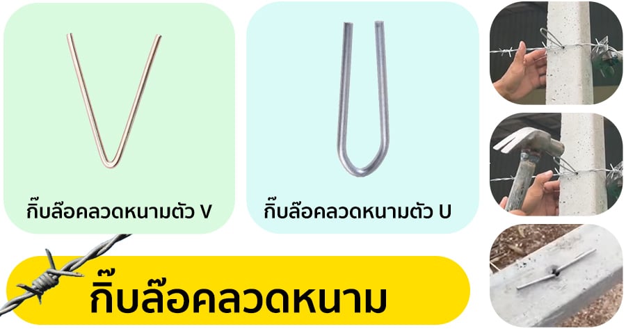 - เตรียมกิ๊บล๊อคลวดหนาม ตัววี หรือตัวยู
